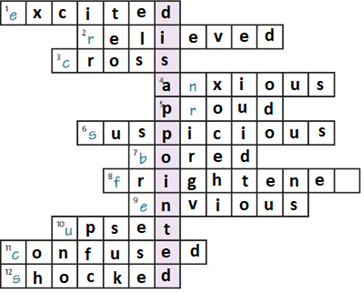 1. Look at the pictures and complete the puzzle with adjectives to describe feelings.