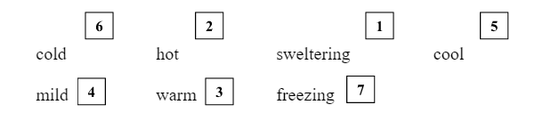 4. Number the adjectives in order from hottest (1) to coldest (7).