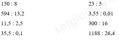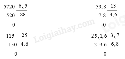 Thực hiện đặt tính rồi chia theo quy tắc đã học.