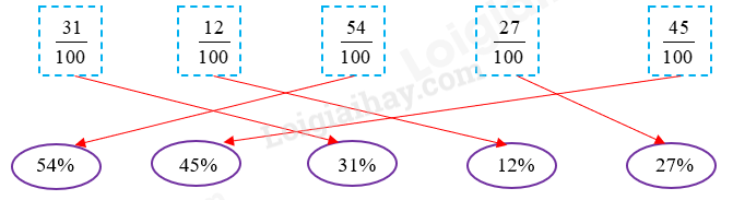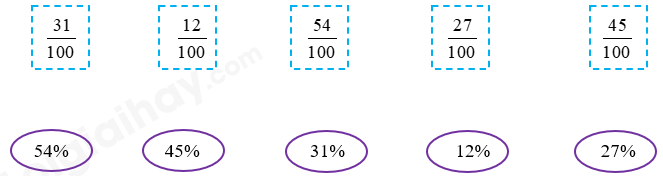 Nối các phân số và tỉ số phân trăm tương ứng.