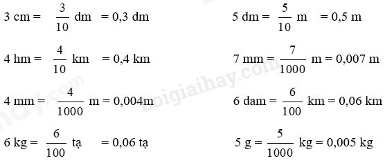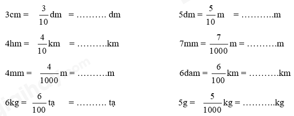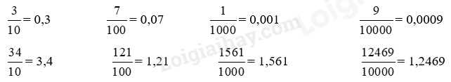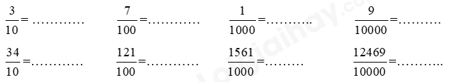 Viết số thập phân thích hợp vào chỗ chấm: Viết các phân số thập phân sau dưới dạng số thập phân: