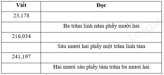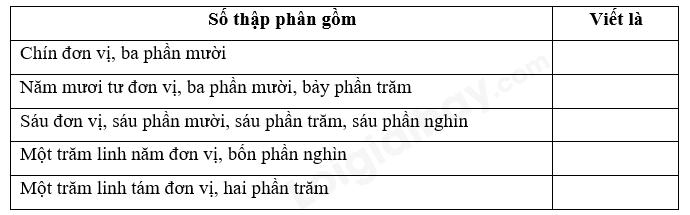 Viết số thập phân hoặc cách đọc thích hợp vào ô trống: