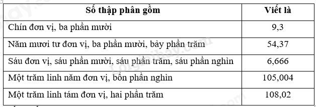 – Muốn viết một số thập phân, ta viết lần lượt từ hàng cao đến hàng thấp: trước hết viết phần nguyên, viết dấu “phẩy”, sau đó viết phần thập phân.