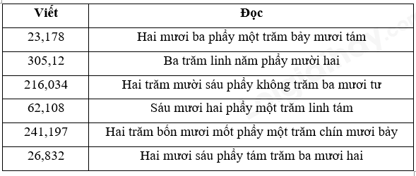 Để đọc số thập phân ta đọc lần lượt từ hàng cao đến hàng thấp: trước hết đọc phần nguyên, đọc dấu “phẩy”, rồi đọc phần thập phân.