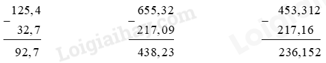– Thực hiện phép trừ như trừ các số tự nhiên.