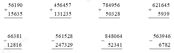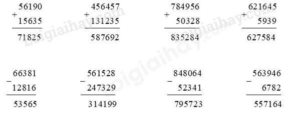Cộng, trừ các chữ số thẳng cột lần lượt từ phải sang trái.