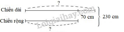 Một hình chữ nhật có nửa chu vi là 23 dm, chiều dài hơn chiều rộng 75 cm. Tính chiều dài, chiều rộng của hình chữ nhật đó.