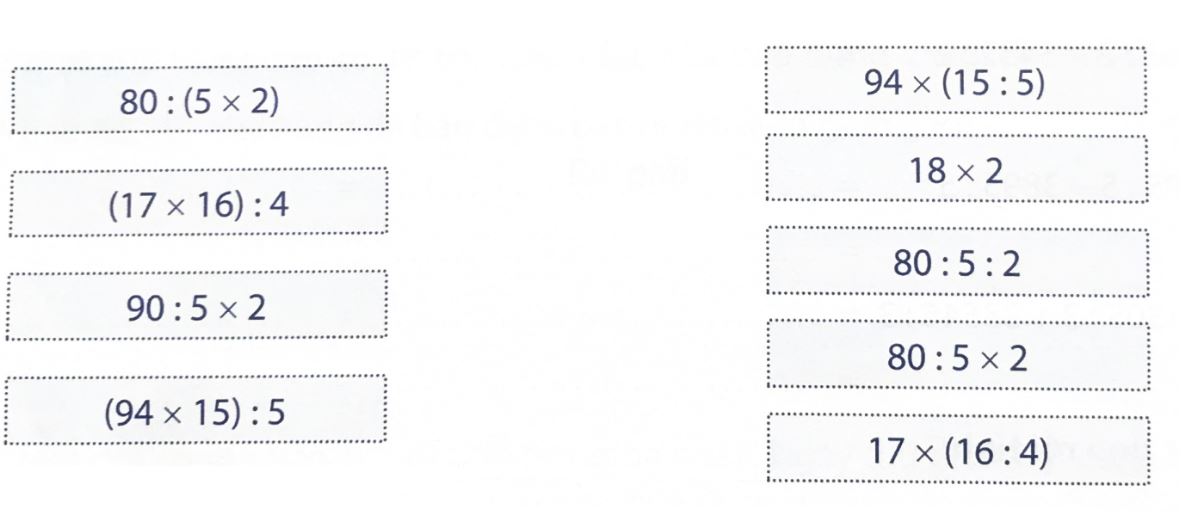 Áp dụng cách chia một số cho một tích, chia một tích cho một số rồi nối 2 biểu thức có cùng giá trị.