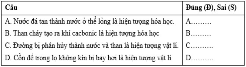 A. Nước chỉ biến đổi trạng thái: từ thể rắn sang thể lỏng còn không thay đổ tính chất => là HTVL => A sai