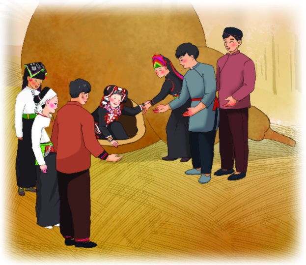 Em dựa vào hiểu biết của bản thân hoặc quan sát kĩ tranh vẽ phía trên để đoán xem đó là dân tộc nào (dựa vào trang phục của họ)