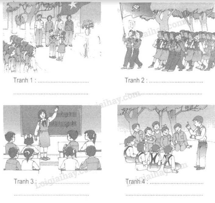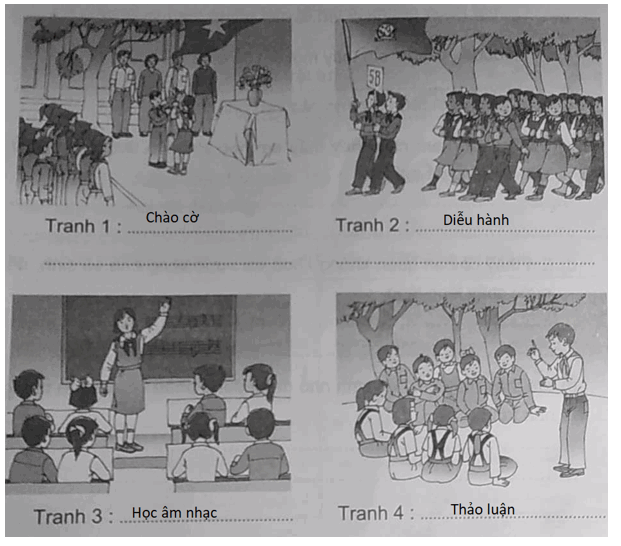 Hãy quan sát và ghi vào dưới mỗi tranh những việc mà các bạn học sinh lớp 5 trong tranh đang thực hiện.