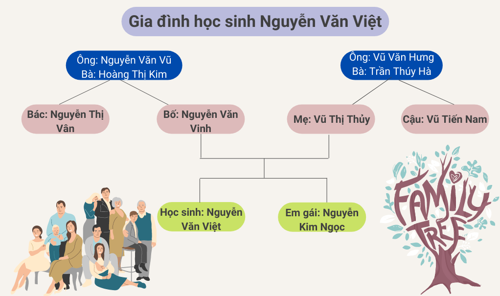 Câu 4: Em hãy hoàn thành cây phả hệ gia đình 3 thế hệ từ ông bà đến thời của em