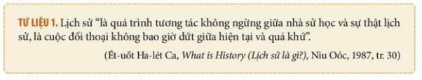 Câu nói Lịch sử là quá trình tương tác không ngừng giữa nhà sử học và sự thật lịch sử, là cuộc đối thoại không bao giờ dứt hiện tại và quá khứ nghĩa là Nhà sử học đứng trên bến bờ của hiện tại để nghiên cứu về quá khứ đã qua, và quá khứ đó là một dòng trôi không bao giờ lặp lại. Do đó, giữa kết quả nghiên cứu sử học, tôi gọi là “lịch sử được nhận thức” và đối tượng của sử học – tức “lịch sử khách quan” bao giờ cũng có một khoảng cách. Các nhà sử học từ đời này sang đời khác chỉ có thể rút ngắn được khoảng cách đó chứ không bao giờ có thể xóa bỏ.