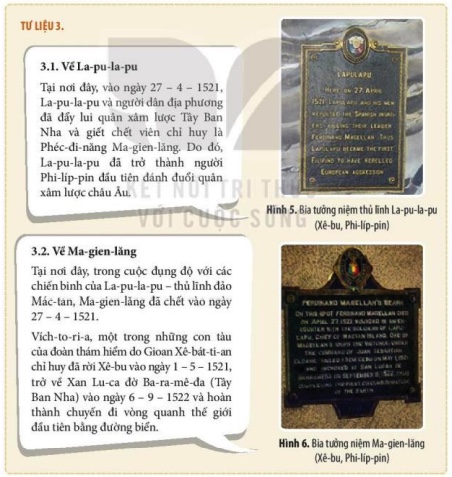 – Cùng đề cập đến những nhân vật lịch sử: Ph. Ma-gien-lăng (chỉ huy đoàn thủy thủ), La-pu-la-pu (thủ lĩnh địa phương),…