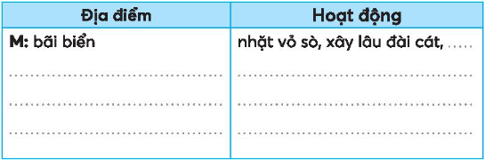 Viết vào bảng dưới đây những địa điểm em muốn đi và những hoạt động em muốn làm trong mùa hè năm tới.