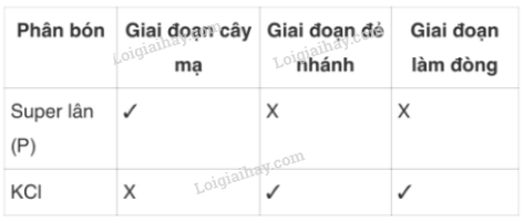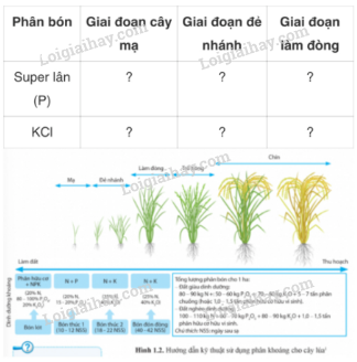 Quan sát hình 1.2, cho biết loại phân bón nào được sử dụng cho một số giai đoạn ở cây lúa trong bảng 1.1?