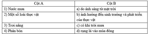 Hãy kết nối các thông tin ở cột A vưới cột B tạo thành sự iên kết giữa sự vật với hiện tượng hoặc hiện tượng với hiện tượng.