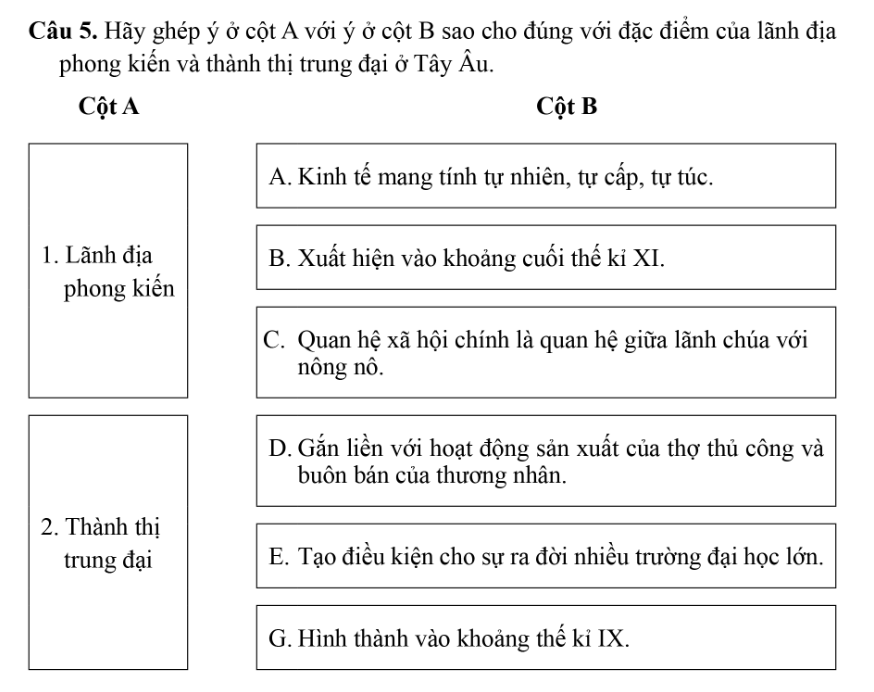 Câu 4. Nội dung nào sau đây không phải là vai trò của thành thị Tây Âu thời trung đại?