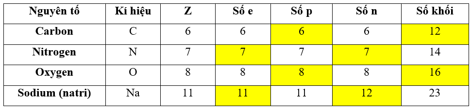 Dựa vào mối liên hệ giữa các hạt proton (p), neutron (n) và electron (e) trong nguyên tử: