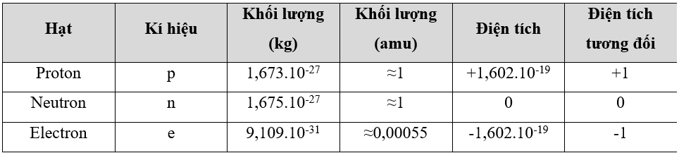 Phát biểu nào sau đây không đúng? A. Nguyên tử được cấu thành từ các hạt cơ bản là proton, neutron và electron. Trường hợp nào sau đây có sự tương ứng giữa hạt cơ bản với khối lượng và điện tích của chúng?