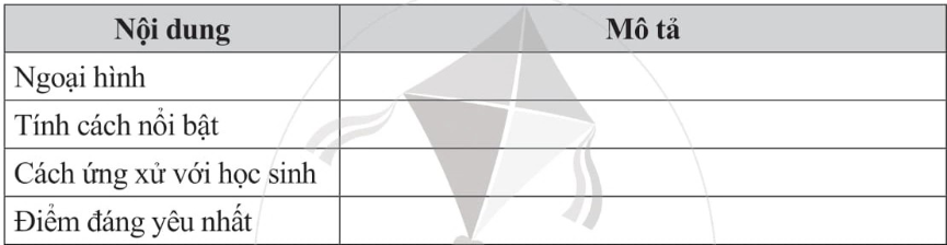 – Hãy mô tả một thầy/cô mà em yêu mến theo các gợi ý:
