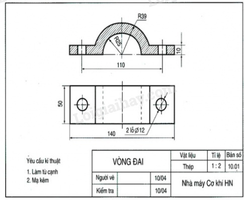 Sưu tầm một bản vẽ kĩ thuật và cho biết khổ giấy, tỉ lệ của bản vẽ. Đọc kích thước ghi trên bản vẽ đó.