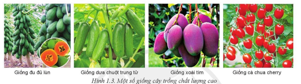 2. Các giống cây trồng chất lượng cao trong Hình 1.3 có những ưu điểm nổi bật gì?