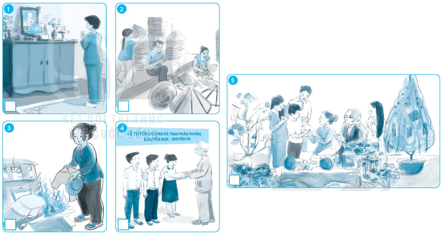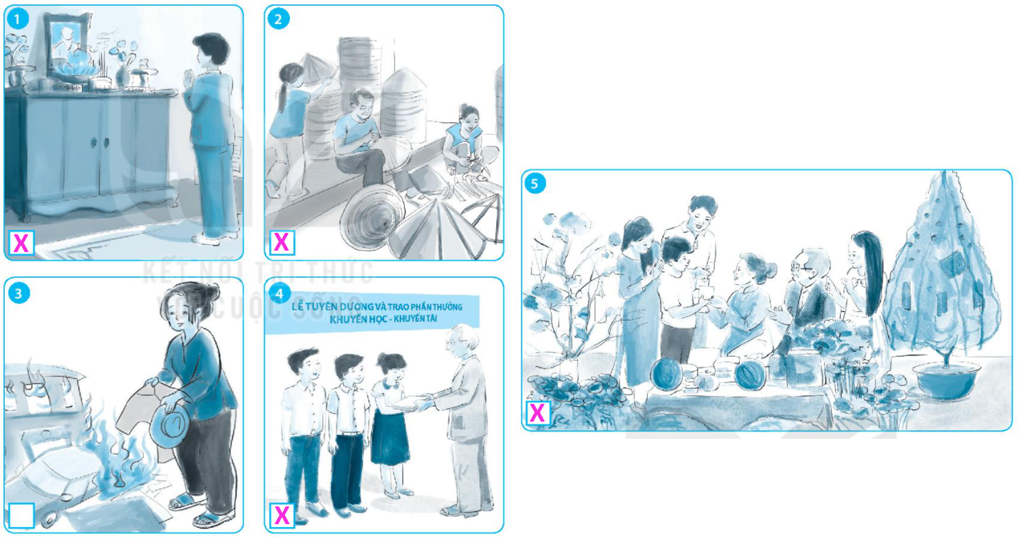 Em hãy đánh dấu X vào □ ở bức tranh thể hiện truyền thống tốt đẹp của gia đình, dòng họ Việt Nam.