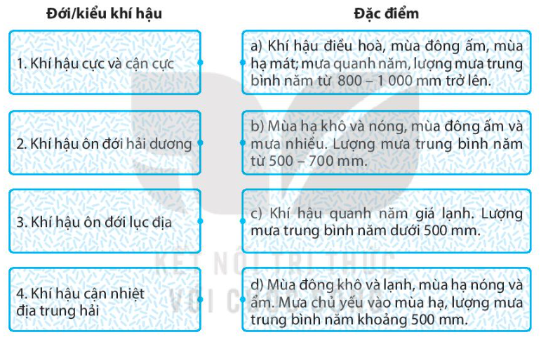 – Mỗi biểu đồ thuộc kiểu khí hậu nào.