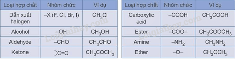 Một số loại nhóm chức cơ bản được thể hiện trong bảng sau: