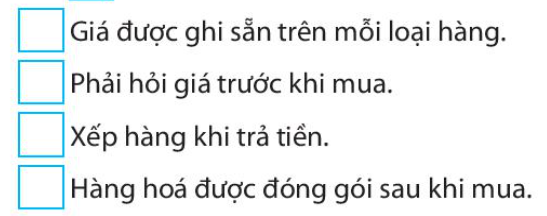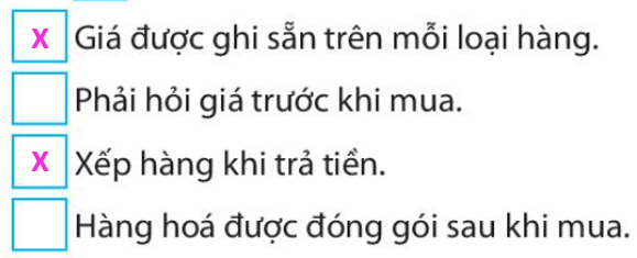Mua hàng hóa ở siêu thị có điểm nào khác so với mua ở chợ? Đánh dấu x vào □ trước những điểm khác đó.