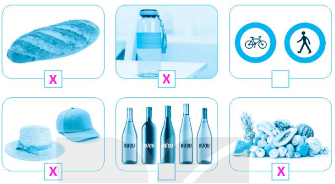 Em quan sát kĩ các hình ảnh và đánh dấu vào những hàng hóa cần thiết.