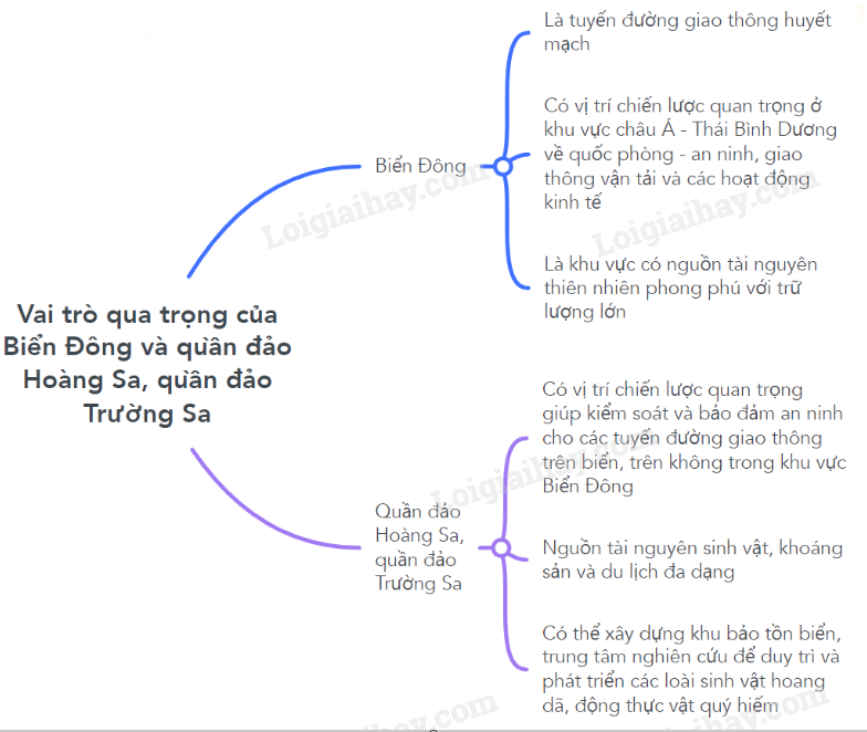 Lập sơ đồ tư duy thể hiện vai trò quan trọng của Biển Đông và quần đảo Hoàng Sa, quần đảo Trường Sa