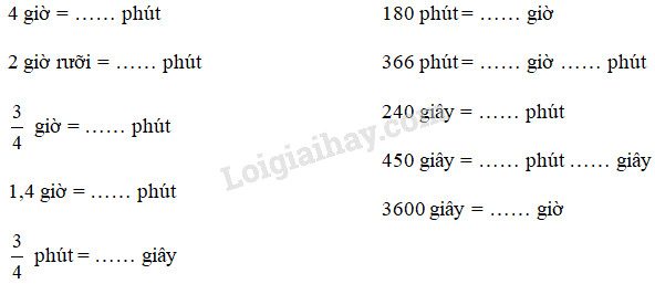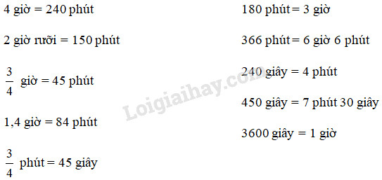 – 1 giờ = 60 phút nên để đổi một số từ đơn vị giờ sang đơn vị phút ta nhân số đó với 60 ; đổi một số từ đơn vị phút sang đơn vị giờ ta chia số đó cho 60.