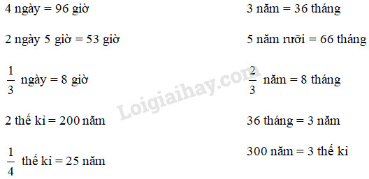 – 1 ngày = 24 giờ nên để đổi một số từ đơn vị ngày sang đơn vị giờ ta nhân số đó với 24.