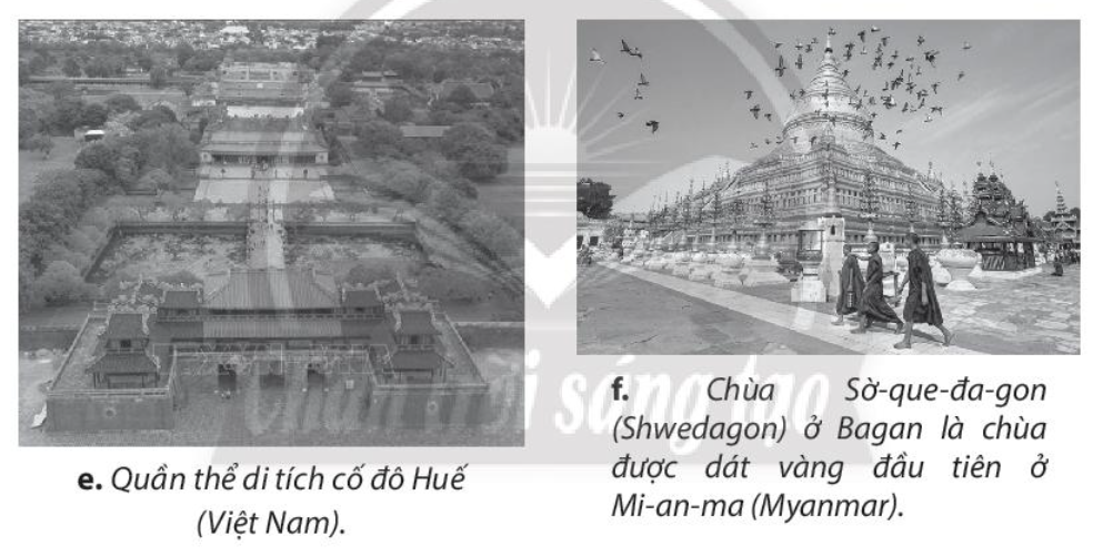 – Những thành tựu chịu ảnh hưởng của văn hóa Ấn Độ: Hình a, b, c, d, f.