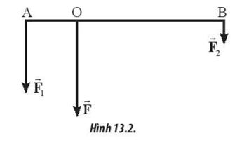 Đặt tại hai đầu thanh AB dài 60 cm hai lực song song cùng chiều và vuông góc với AB. Lực tổng hợp \(\overrightarrow F \) được xác định đặt tại O cách A một khoảng 15 cm và có độ lớn 12 N (Hình 13.2). Độ lớn của lực \(\overrightarrow {{F_1}} \) bằng bao nhiêu?
