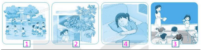 Sắp xếp các tranh sau theo đúng trình tự bài đọc. (đánh số 1, 2, 3, 4 vào ô trống dưới tranh)