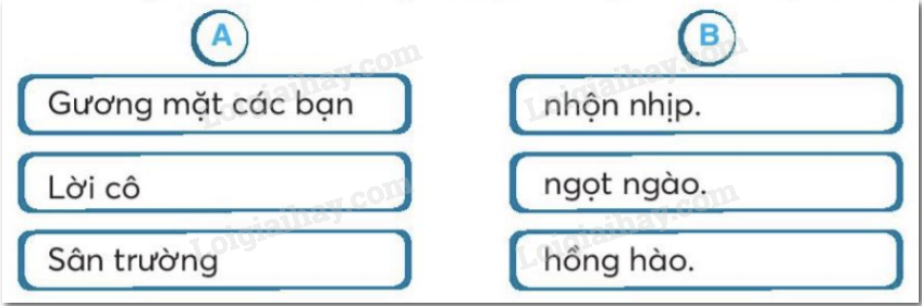 Nối từ ngữ ở cột A với từ ngữ ở cột B để tạo câu nêu đặc điểm.