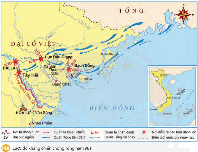 Dựa vào lược đồ 14.9, em hãy mô tả nét chính về cuộc chiến chống Tống thời Tiên Lê (năm 981)
