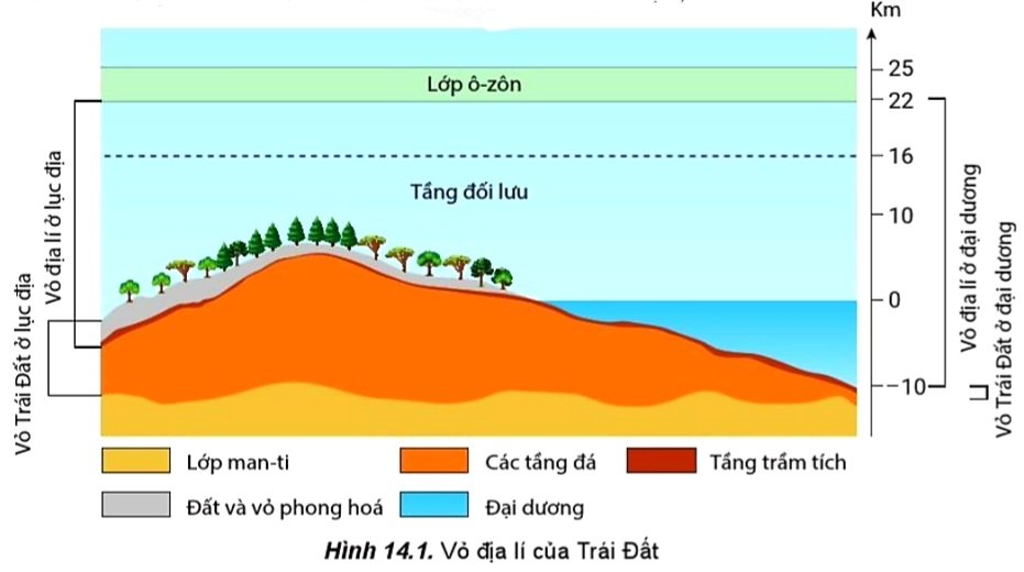 Đọc thông tin và quan sát hình 14.1, hãy phân biệt vỏ địa lí với vỏ Trái Đất.