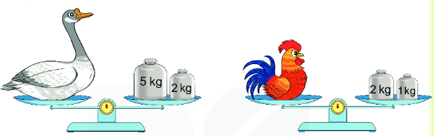a) Con ngỗng cân nặng 7 kg (Vì 5 kg + 2 kg = 7 kg).