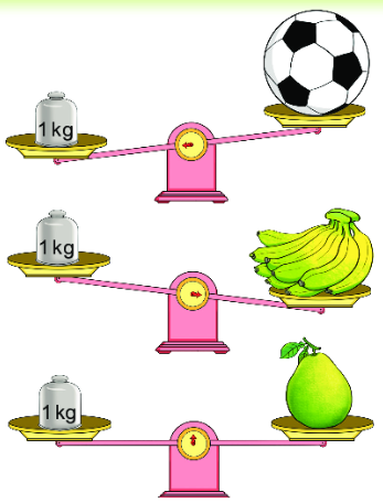 Giải thích: Quả bóng nhẹ hơn 1 kg, 1 kg nặng bằng quả bưởi, vậy quả bóng nhẹ hơn quả bưởi. Do đó nói “Quả bóng nặng bằng quả bưởi” là sai.