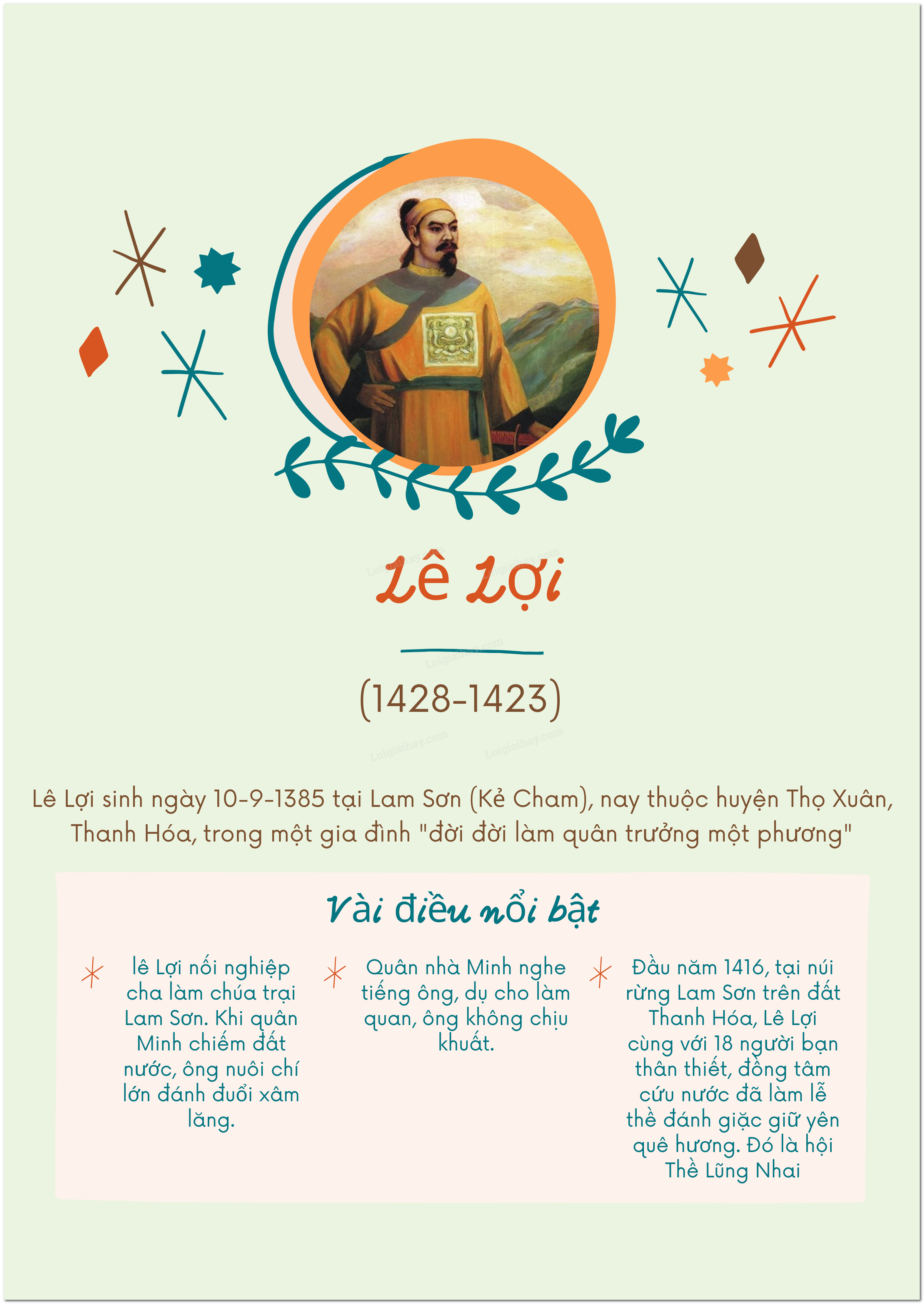 Nêu những hiểu biết của em về chủ tướng Lê Lợi