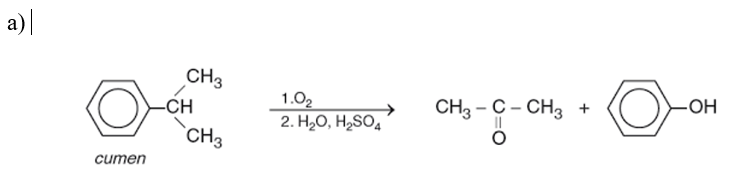 a) Tính khối lượng phenol và acetone (theo ) thu được khi oxi hoá 1 tấn cumene trong công nghiệp. Biết hiệu suất của phản ứng điều chế phenol và acetone từ cumene trong công nghiệp là 95%