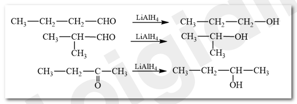 Aldehyde bị khử bằng NaBH4 hoặc LiAlH4 sinh ra alcohol bậc một; ketone bị khử bằng NaBH4 hoặc LiAlH4 sinh ra alcohol bậc hai.