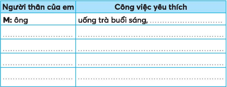 Người thân của em thích làm công việc gì? Điền thông tin vào bảng theo mẫu.