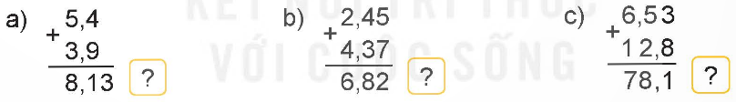 – Viết dấu phẩy ở tổng thẳng cột với các dấu phẩy ở hai số hạng.