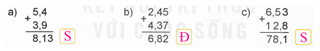 Kiểm tra cách đặt tính và kết quả của từng phép tính. Nếu đúng ghi Đ, nếu sai ghi S.