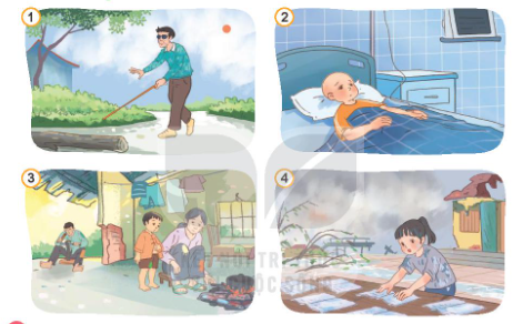 a. Em hãy quan sát tranh và cho biết những người trong tranh đang gặp khó khăn gì.